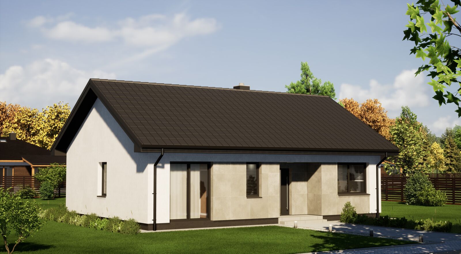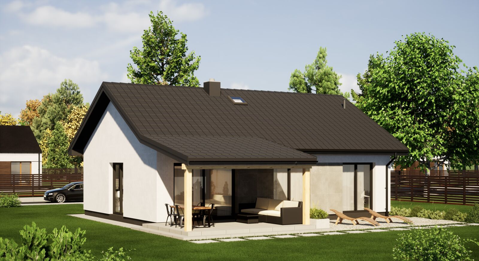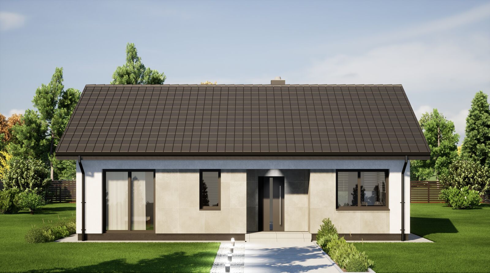 Moderna 91 – dom, który dopasuje się do Ciebie. Moderna 91 to parterowy dom o powierzchni 91 m², zaprojektowany tak, aby łączyć nowoczesny design, funkcjonalność i komfort codziennego życia . W środku znajdziesz 4 pokoje , przestronny salon z aneksem kuchennym 2 łazienki oraz praktyczną< – czyli wszystko, czego potrzebuje współczesna rodzina 2+2. Projekt dostępny jest w 3 wariantach dachu : elegancki kopertowy, minimalistyczny bezokapowy w formie nowoczesnej stodoły oraz klasyczny dwuspadowy. Do tego możesz wybrać dekor elewacji w jednej z 3 odsłon lamele, dekor drewnopodobny lub beton – by nadać swojemu domowi wyjątkowy charakter. Niewątpliwym atutem jest 18-metrowy zadaszony taras , który tworzy idealną przestrzeń do spotkań z bliskimi, relaksu z kawą o poranku czy rodzinnych kolacji na świeżym powietrzu. A jeśli potrzebujesz więcej miejsca, projekt daje możliwość adaptacji poddasza , by Twój dom rósł razem z Tobą i Twoimi planami. Moderna 91 to dom, który łączy nowoczesną architekturę z praktycznymi rozwiązaniami – gotowy, aby stać się sercem rodzinnego życia.