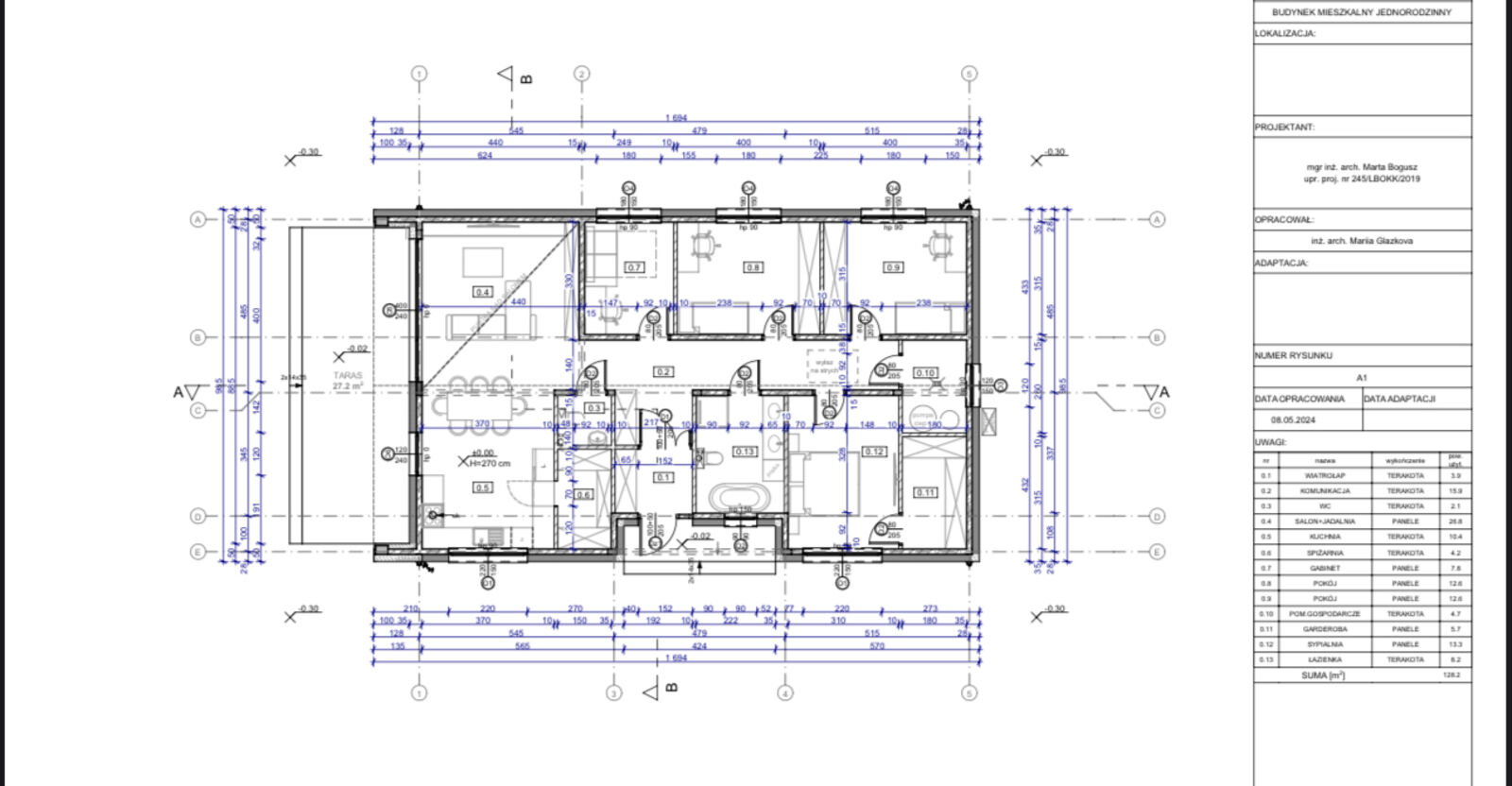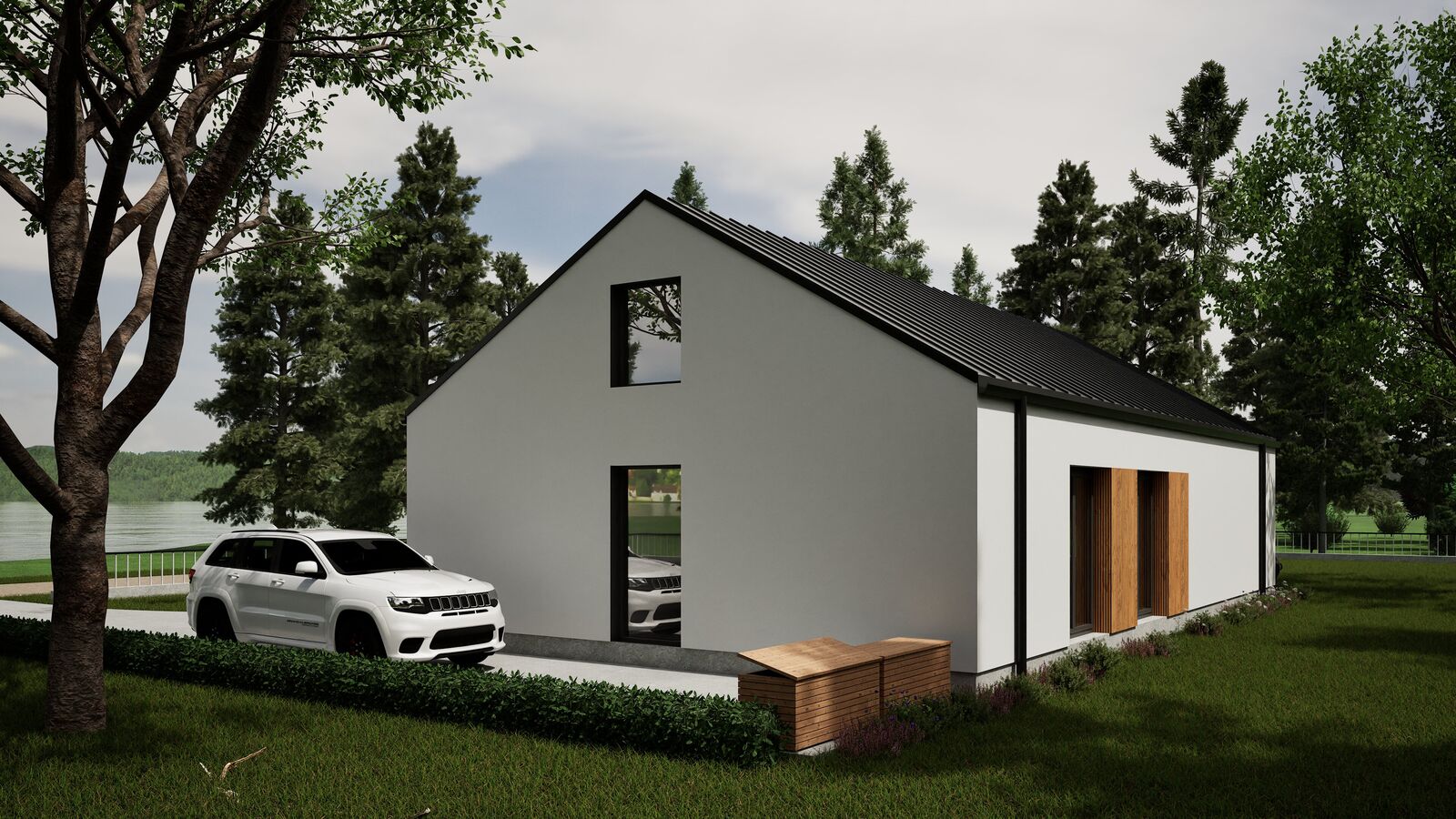 Moderna 129 – Parterowa Nowoczesna Stodoła 🏡✨Przestronny dom parterowy o pow. ok. 129 m², zaprojektowany w stylu nowoczesnej stodoły – minimalistyczna bryła, eleganckie proporcje i ponadczasowy design.Duża strefa dzienna z salonem i kuchnią 🍽️, komfortowe pokoje, funkcjonalny układ i duże przeszklenia, które naturalnie doświetlają wnętrze 🌞.Idealny wybór dla tych, którzy chcą nowoczesny styl, wygodę parteru i poczucie przestrzeni 💙
