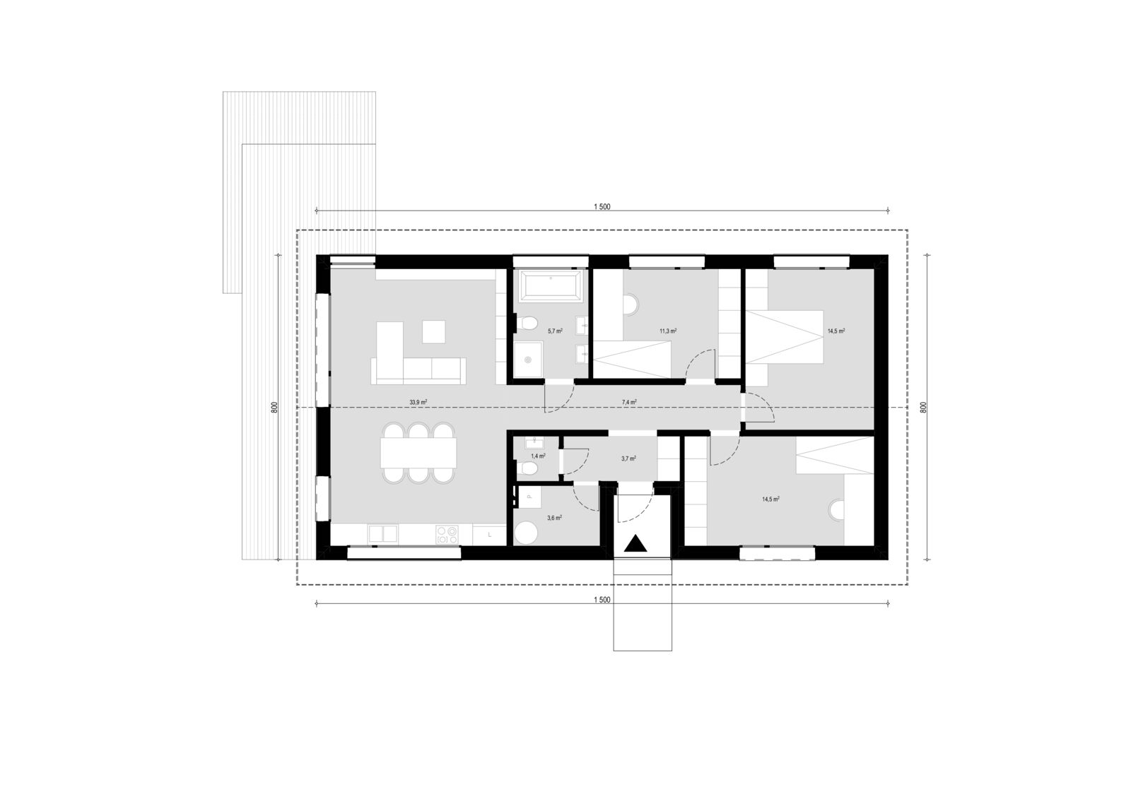 Moderna 98 🏠 to kompaktowy, niezwykle funkcjonalny dom dla osób ceniących wygodę i przestrzeń. Projekt obejmuje 3 sypialnie, salon z aneksem kuchennym, 2 łazienki oraz praktyczną spiżarnię. Prosta bryła z dachem dwuspadowym to ponadczasowy wygląd i optymalne koszty budowy. Idealny metraż bez zbędnych metrów 🏠✨